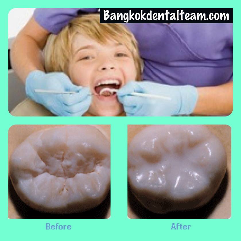 Sealants are used to protect the chewing surfaces of the child’s back teeth. These surfaces often decay because they contain pits and fissures-tiny grooves and depressions, where plaque accumulates.