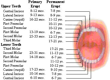 Children’s teeth begin forming before birth. As early as 4 months, the first primary (or baby) teeth to erupt through the gums are the lower central incisors, followed closely by the upper central incisors. Although all 20 primary teeth usually appear by age 3, the pace and order of their eruption varies.