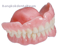 – The pink plastic of the denture base is brittle acrylic, the same material used to make standard full dentures