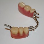 – For several teeth missing, wrought wire clasps might be added and cured into the structure of the denture base for better retention.