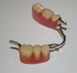– The teeth have been altered slightly beforehand in order that the partial denture can rest upon them without interfering with the way the patient bites the teeth together.